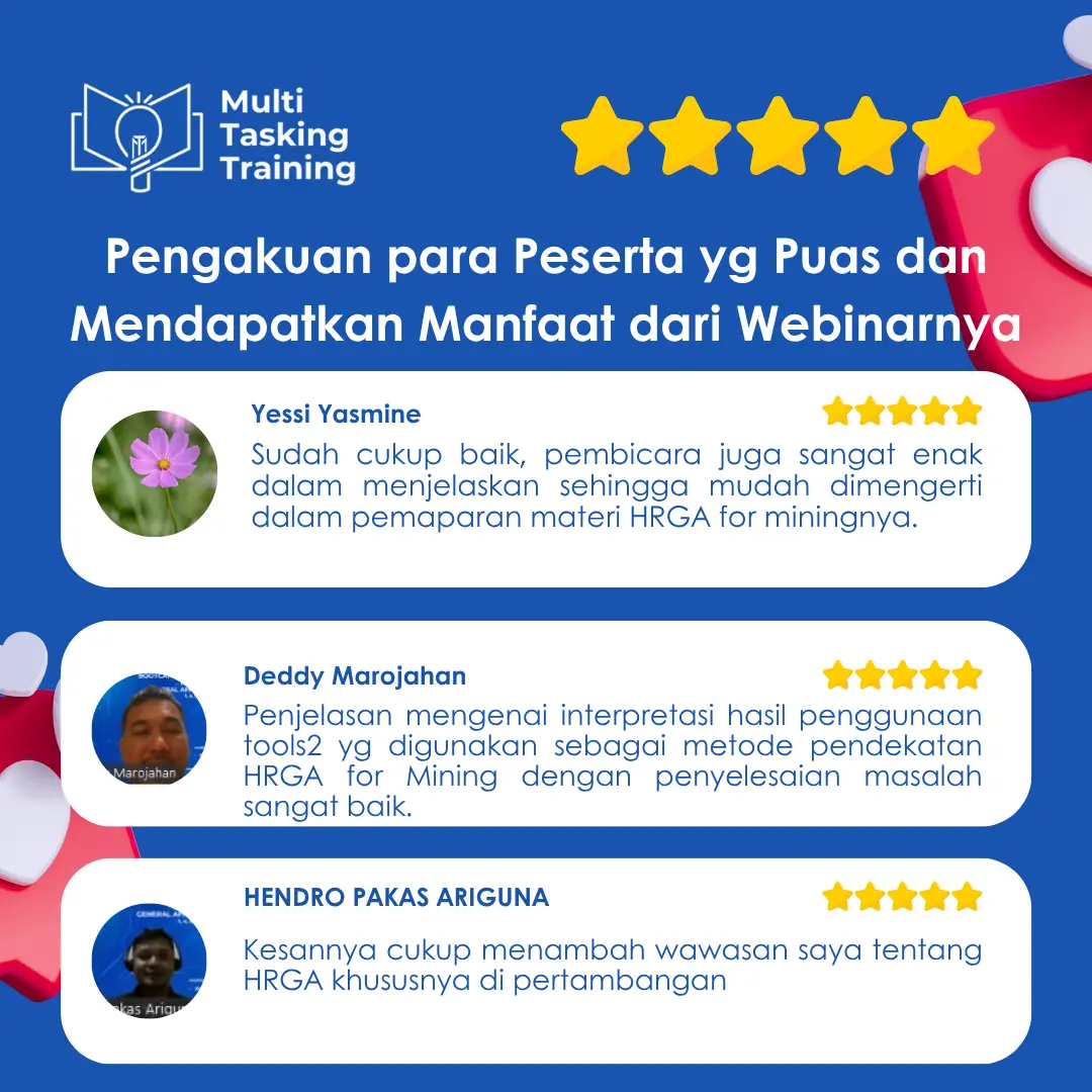 Trainer Certified HR Professional & Data Analyst (Universitas Indonesia, IBM Data Science Certified) dengan pengalaman 15+ tahun di bidang HR sektor pertambangan, serta pernah menjabat sebagai HR Senior Manager di salah satu perusahaan tambang batubara terbesar di Indonesia.