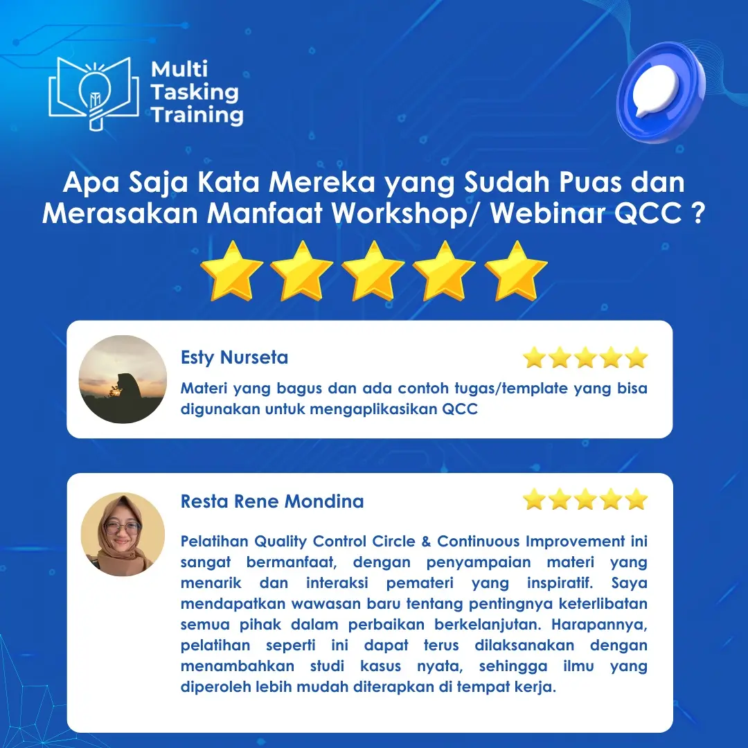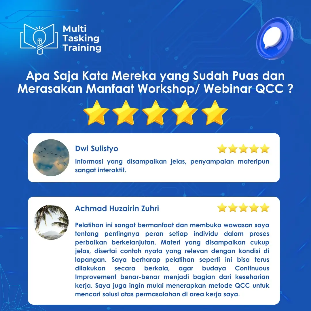 seorang Trainer Profesional dengan pengalaman lebih dari 3 tahun di bidang Quality Control Circle, Problem Solving, Kaizen 5R, dan Quality Shop Floor Management. Berpengalaman membawakan pelatihan berbasis standar internasional seperti ISO 9001, ISO 14001, ISO 45001, SMK3, dan IATF 16949, serta menguasai berbagai tools praktis termasuk A3 Report, SPC, APQP, MSA, Core Tools, dan Control Plan.