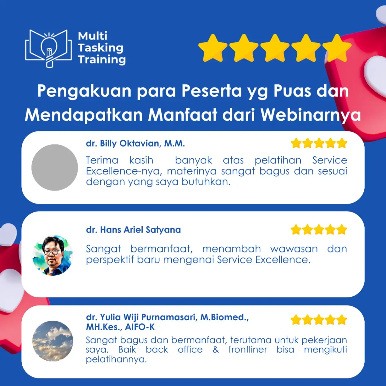 Seorang Professional Trainer berpengalaman di bidang General Affairs, HR, dan Service Excellence, serta memiliki keahlian di Digital Marketing, Public Relation, dan Public Speaking. Selain itu, juga berpengalaman memberikan pelatihan Kaizen 5S/5R, Quality Control Circle, Leadership, dan Effective Communication Skill untuk meningkatkan kompetensi tim di berbagai perusahaan.