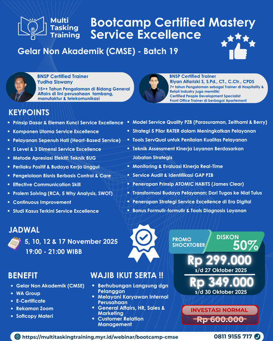 Terbatas Sampai 31 Oktober 2025Multitasking juga menyediakan Berbagai E-Course yang bisa Anda Pelajari untuk membekali Anda dengan keterampilan dan pengetahuan penting yang diperlukan untuk berkembang dalam lanskap General Affairs yang terus maju