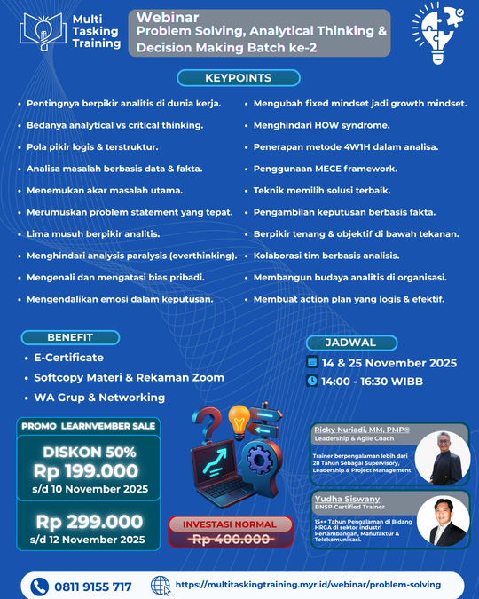 Multitasking Training adalah provider penyedia training offline, Webinar Online, In-House Training & Public Training